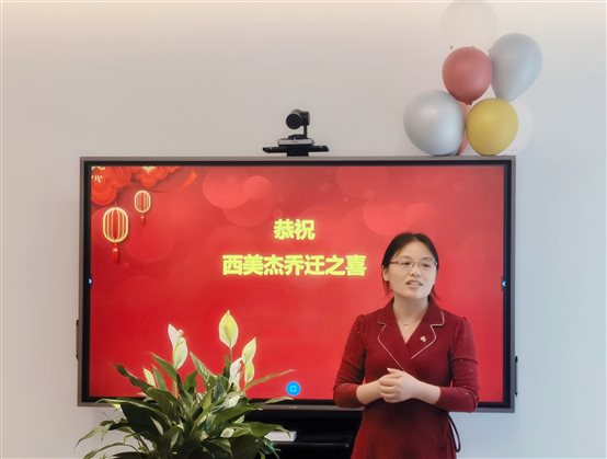 為了配合國家的疫情防控政策,公司在總部辦公室進行了簡短的慶祝儀式??偨浝碇韽埩鞒謺h,部分員工代表參加,公司董事長晏曉梅、公司總經理房浩霞分別致辭,慶祝公司喬遷之喜,肯定了行政部門以及參與辦公室裝修、遷址等各項工作的同事們的努力付出。疫情當下,再次表達了對所有員工多年如一日的執(zhí)著堅守的感謝,正是有你們的付出和努力,才使得公司各項業(yè)務能夠有條不紊的開展。最后,重點感謝西美杰所有的業(yè)務伙伴,感謝16年的相守和肯定,未來我們將全力以赴,定不負所望。