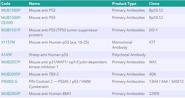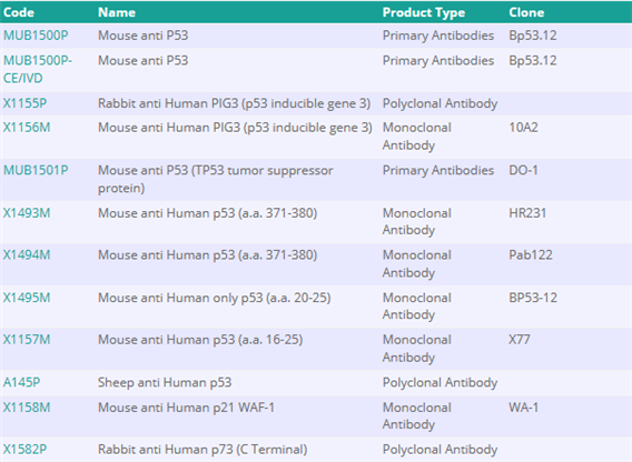 西美杰代理的Nordic-MUbio品牌提供了大量與p53蛋白相關的抗體產(chǎn)品,這些產(chǎn)品在癌癥領域的研究中發(fā)揮著重要作用。這些抗體的研究方向涵蓋了細胞周期、癌癥、細胞結構、腫瘤學、細胞凋亡、感染性疾病、CD maker、細胞粘連、酶、細胞外基質和干細胞等多個領域。為了方便客戶進行搜索,小編整理了部分與p53蛋白相關的抗體產(chǎn)品列表: