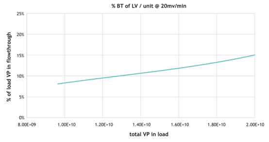 圖3. 15%穿透時,每根離心柱的動態(tài)結合載量1.9E+10。 Nereus LentiHERO?離心柱以20 mv/min的速度上樣,流穿收集在10mL液體中,使用p24 ELISA分析,基于上樣的總VP,計算VP穿透百分比。
