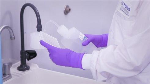 因此,Cygnus專家建議在使用Cygnus ELISA試劑盒時盡量采用手動洗板的方法。該方法簡便易學(xué),無需任何特殊設(shè)備。只要準(zhǔn)備一些低纖維吸水紙和一個洗瓶就可輕松操作,需要注意的是洗瓶的出水口要修剪成大開口斜面以確保洗液的充分流動與合適的沖洗力度。