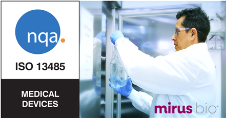 Mirus Bio的質(zhì)量管理體系通過了ISO 13485認證,可用于技術(shù)轉(zhuǎn)讓以及分銷GMP級輔助材料。