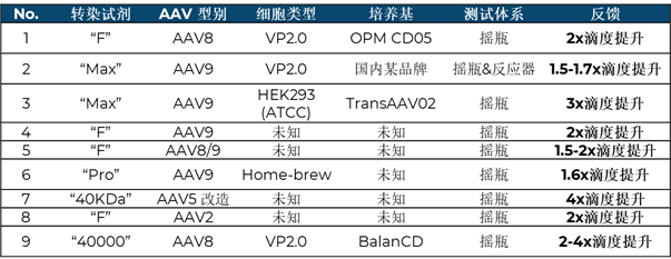 RevIT Enhancer在國(guó)內(nèi)客戶(hù)不同AAV項(xiàng)目平臺(tái)上的測(cè)試反饋結(jié)果