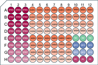 ? 在ELISA實(shí)驗(yàn)之前應(yīng)該合理規(guī)劃孔板布局:優(yōu)化的孔板布局能夠監(jiān)測(cè)關(guān)鍵性能指標(biāo),并在出現(xiàn)問題時(shí)更快地進(jìn)行問題排查。更多布板示例請(qǐng)點(diǎn)擊這里獲取。