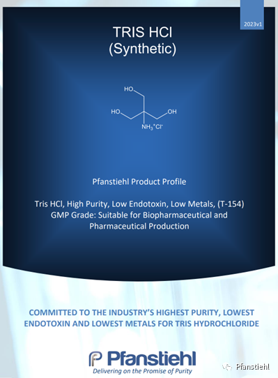 Pfanstiehl秉承一貫高品質(zhì)理念,繼Tris Base (T-153) 后再次重磅推出GMP級別Tris HCL T-154。目前藥典對Tris HCL無專論,Pfanstiehl將于2024年贊助USP設(shè)立Tris HCL的專論。Pfanstiehl的Tris Base和Tris HCL均為注射級別,具有超高純度,超低內(nèi)毒素,超低金屬雜質(zhì)殘留的特點,并同時檢測各種酶的殘留,如DNA酶,RNA酶,磷酸酶和脂肪酶等,也是全球首款將亞硝酸鹽加入質(zhì)控標準的Tris Base和Tris HCL,符合生物制藥和疫苗的生產(chǎn)要求。