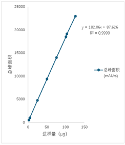 In the process of analyzing 8 injection volume gradients of the recombinant anti-human ER2 antibody factor monoclonal antibody using ZF-LC-0001, the correlation coefficient R2 reached 0.9999. The data indicates that within the maximum analytical limit of the instrument, changes in the injection volume gradient have little impact on the accuracy of the data.