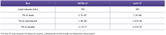LentiHERO® processed large feed volumes before breakthrough of functional and physical LVV particles.